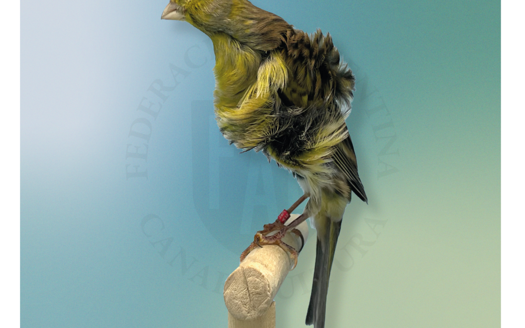 El Rizado Suizo es un canario Rizado, de forma elíptica (media luna), tiene un tamaño de 18 cm.